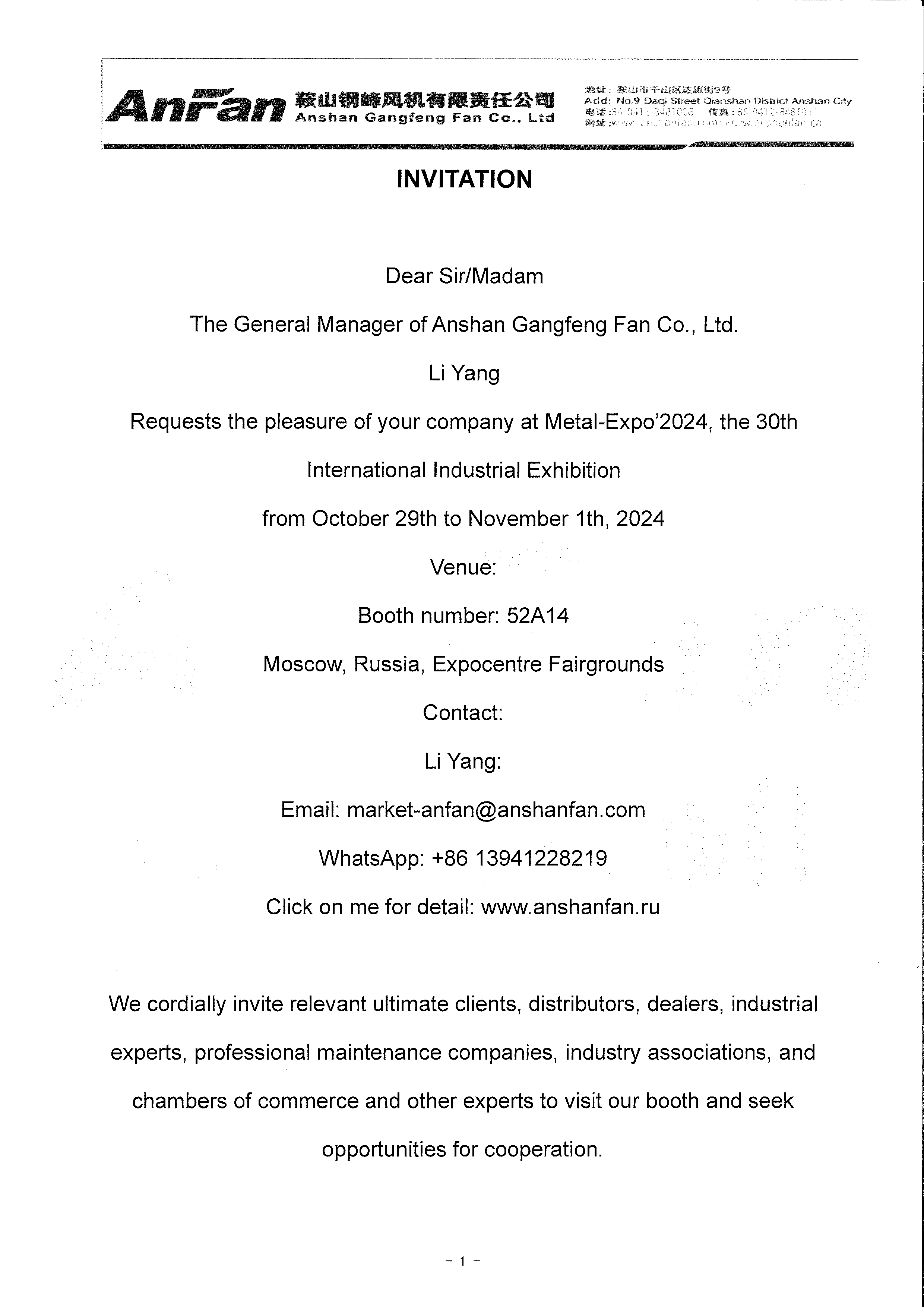 Contact us :+86 15566250016/86-0412-8481008 / market-anfan@anshanfan.com