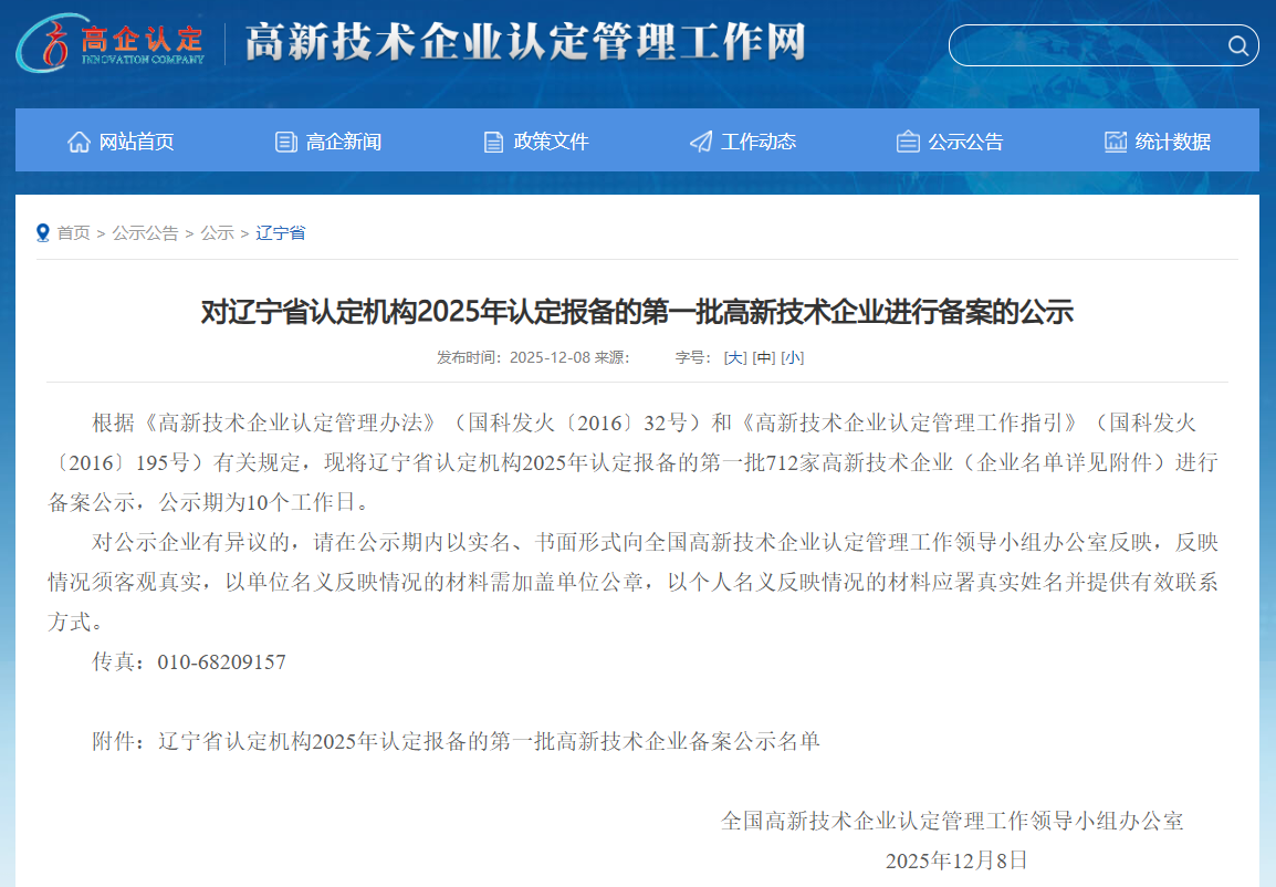 2025-12-10 15:00:00Recently, the list of public notice for the first batch of high-tech enterprise filing in Liaoning Province in 2025 was released. Anshan Gangfeng Fan Co., Ltd. has once again passed the certification, marking that the company's innovation capabilities.